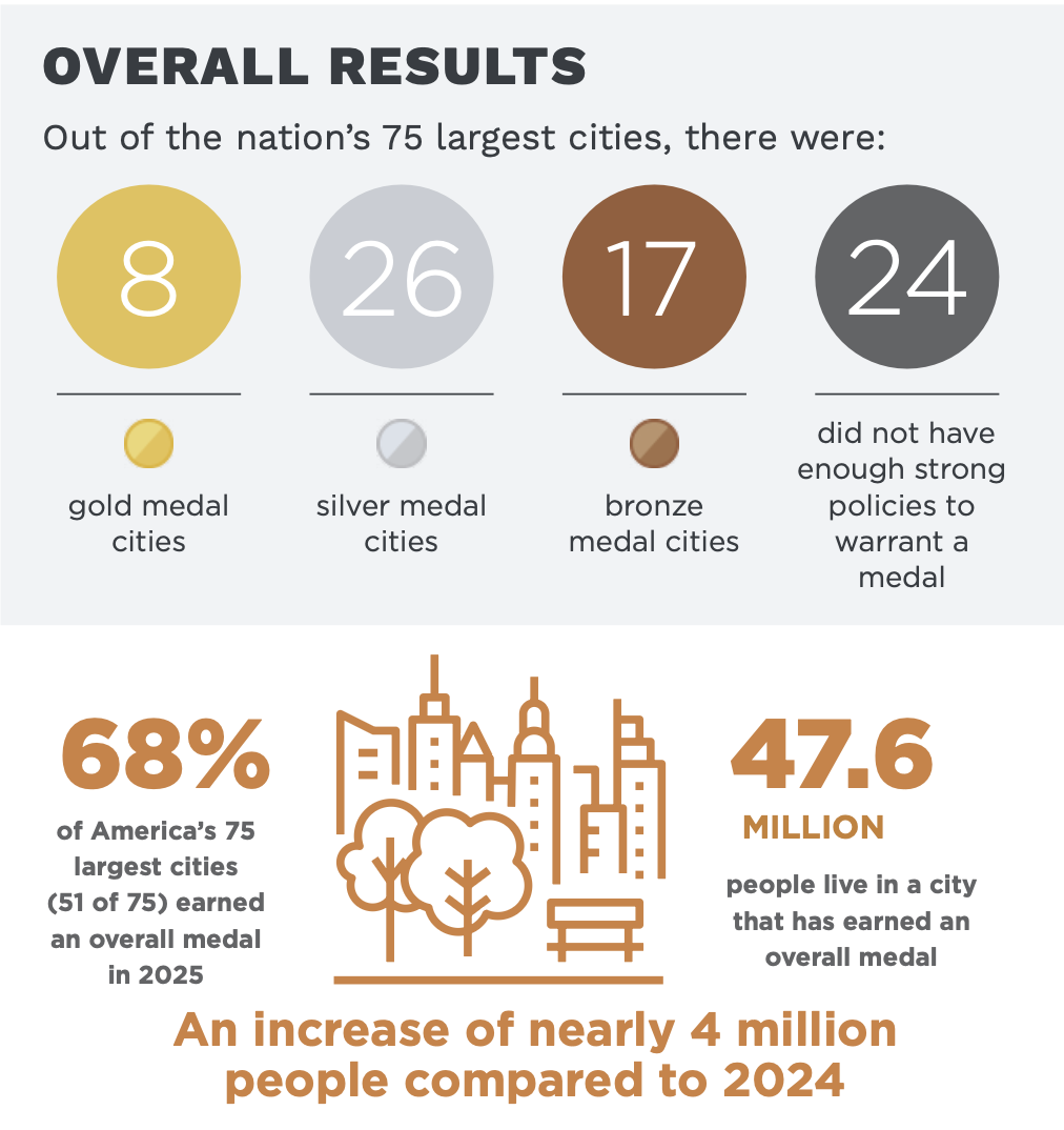 51 of 75 largest cities earn overall medals in CityHealth’s 2025 policy assessment, with 35 medal improvements across 12 policies